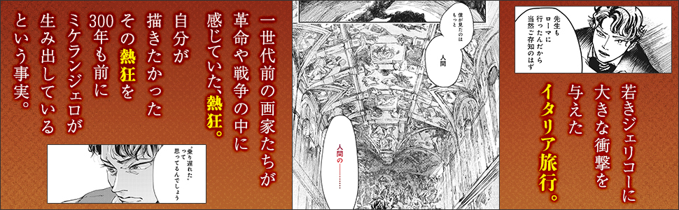 「マイルスの前にパーカーがいたように、ドラクロワの前にはジェリコーがいた。時代を切り拓いた兄貴分的な天才の過剰な生と創造。日本で今、こんな漫画が読めるとは!と瞠目。」平野啓一郎