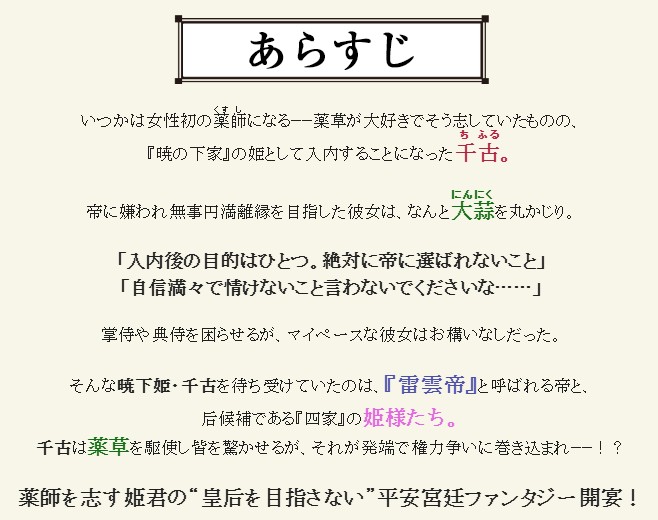 薬師を志し、本心では皇后とならず円満離縁を目論んでいる。