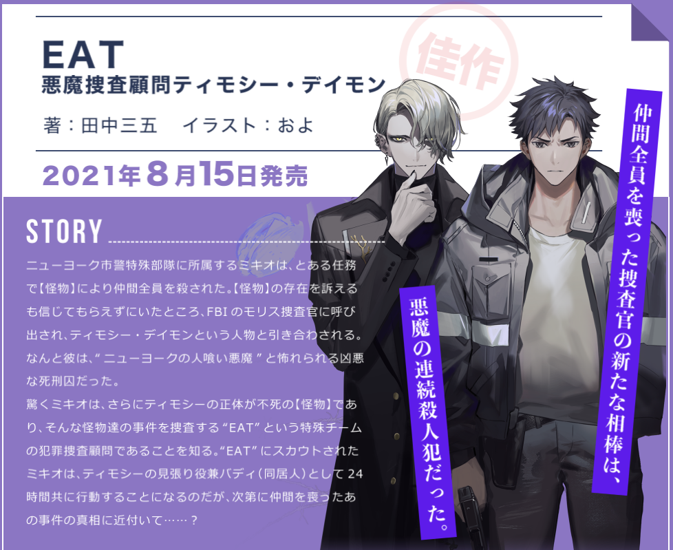 半ば脅される形で“EAT”の勧誘を受け、見張り役兼バディとしてティモシーと共に過ごすことになるミキオ。食習慣も価値観も違い衝突する二人だが、街では臓器を喰われた警察官が発見されて……。