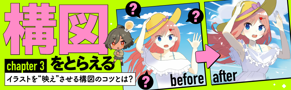 動画で紹介している添削講座を、「キャラクター」「演出」「構図」の3つの枠組みに分けて解説します。