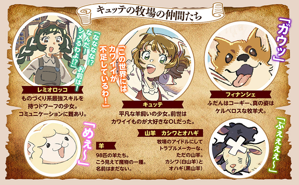 羊飼いの少女キュッテはある日、カワイイものが大好きなOLだった前世を思い出す。