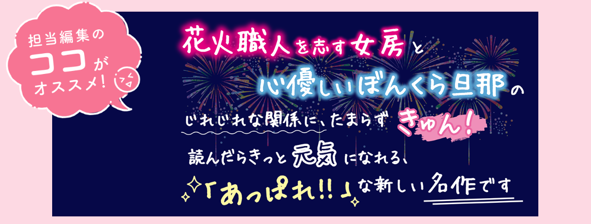 江戸の貧乏長屋に住むソラ。大店だった生家の花火屋は失火により零落。再興を目指して婿探し中だが、難航している。