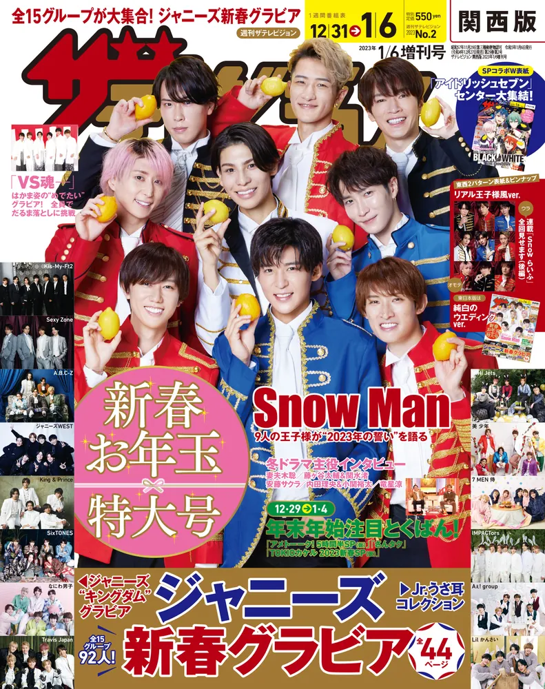 週刊ザテレビジョン新春お年玉特大号の表紙はSnow Manの王子様&ウエディング風な東西2パターン表紙+ピンナップ付き!さらにSP裏表紙には“ブラホワ”から4人のセンターが大集結!