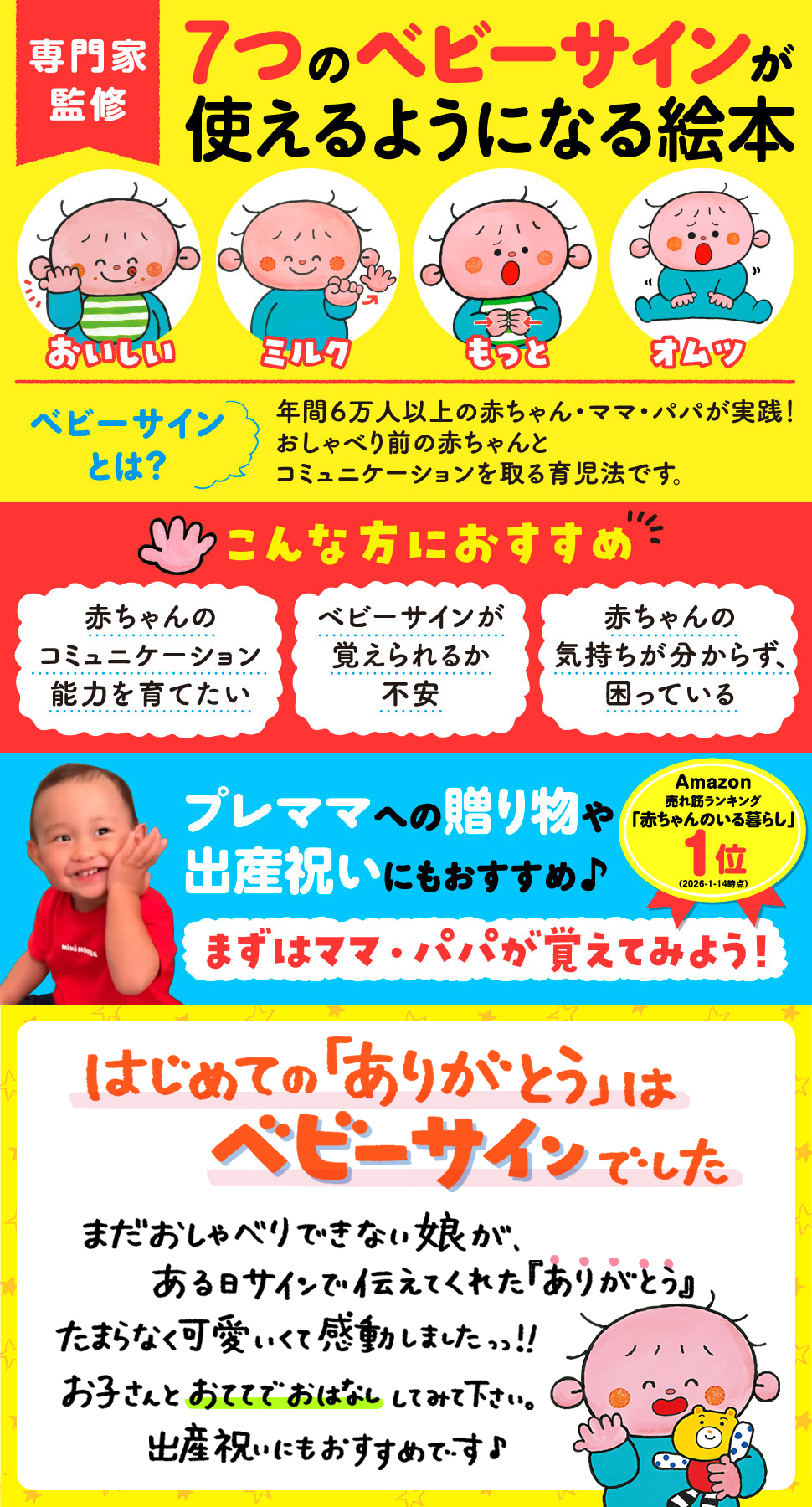 手軽にベビーサインデビュー♪専門家監修・7つのサインが身につく絵本。