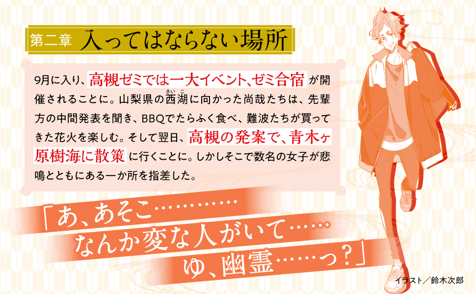 先輩方の中間発表、BBQに花火と様々なイベントをこなし、高槻の発案で、尚哉たちは青木ヶ原樹海へ行くことに。