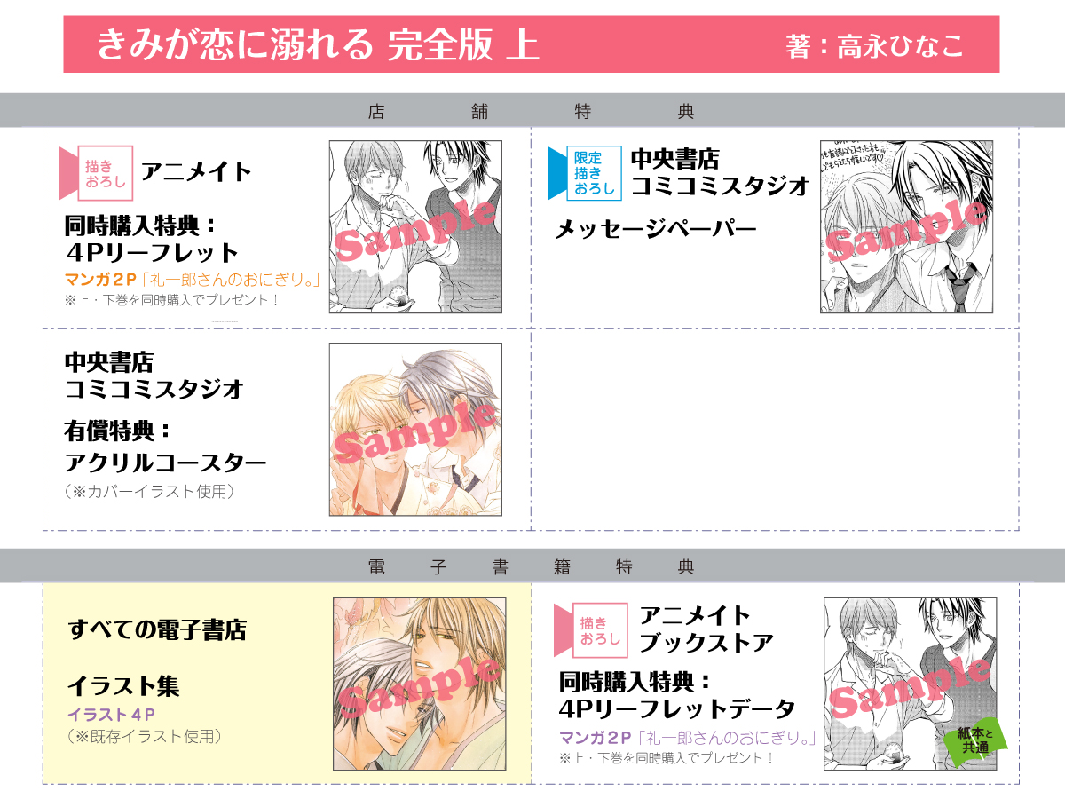 ※『きみが恋に溺れる 完全版 上』は2007年・2009年に刊行した『きみが恋に溺れる』(あすかコミックスCL―DX)を加筆修正し、描きおろしマンガと既存イラストを収録したものです。本編の内容は同じものとなります。重複購入にご注意ください。
