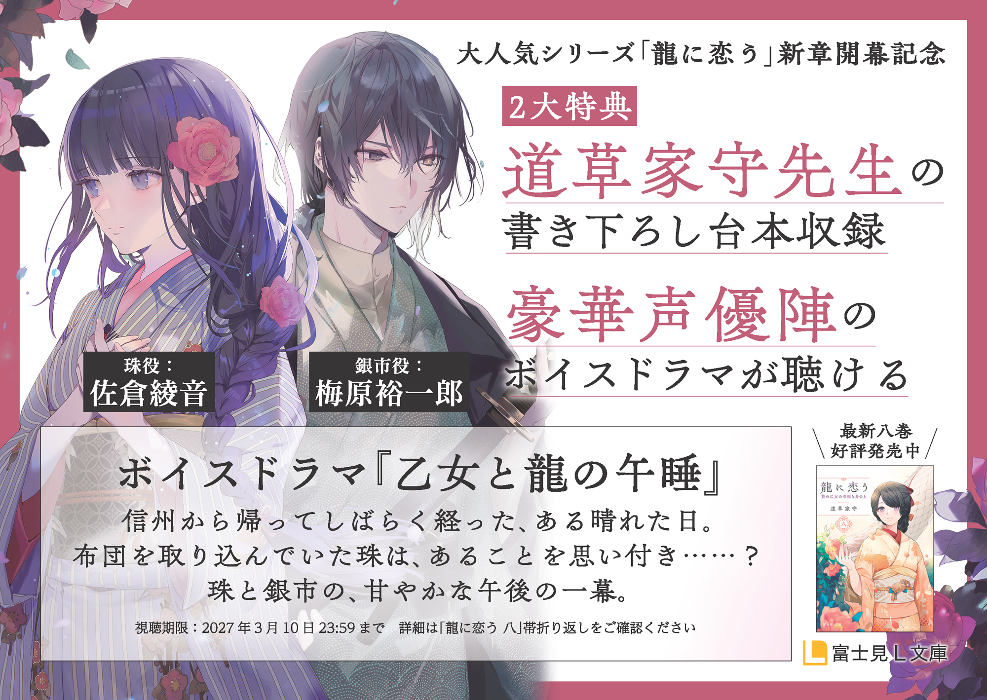 「龍に恋う」新章開幕を記念して、最新8巻には紙・電子ともに2大特典が付いてきます♪