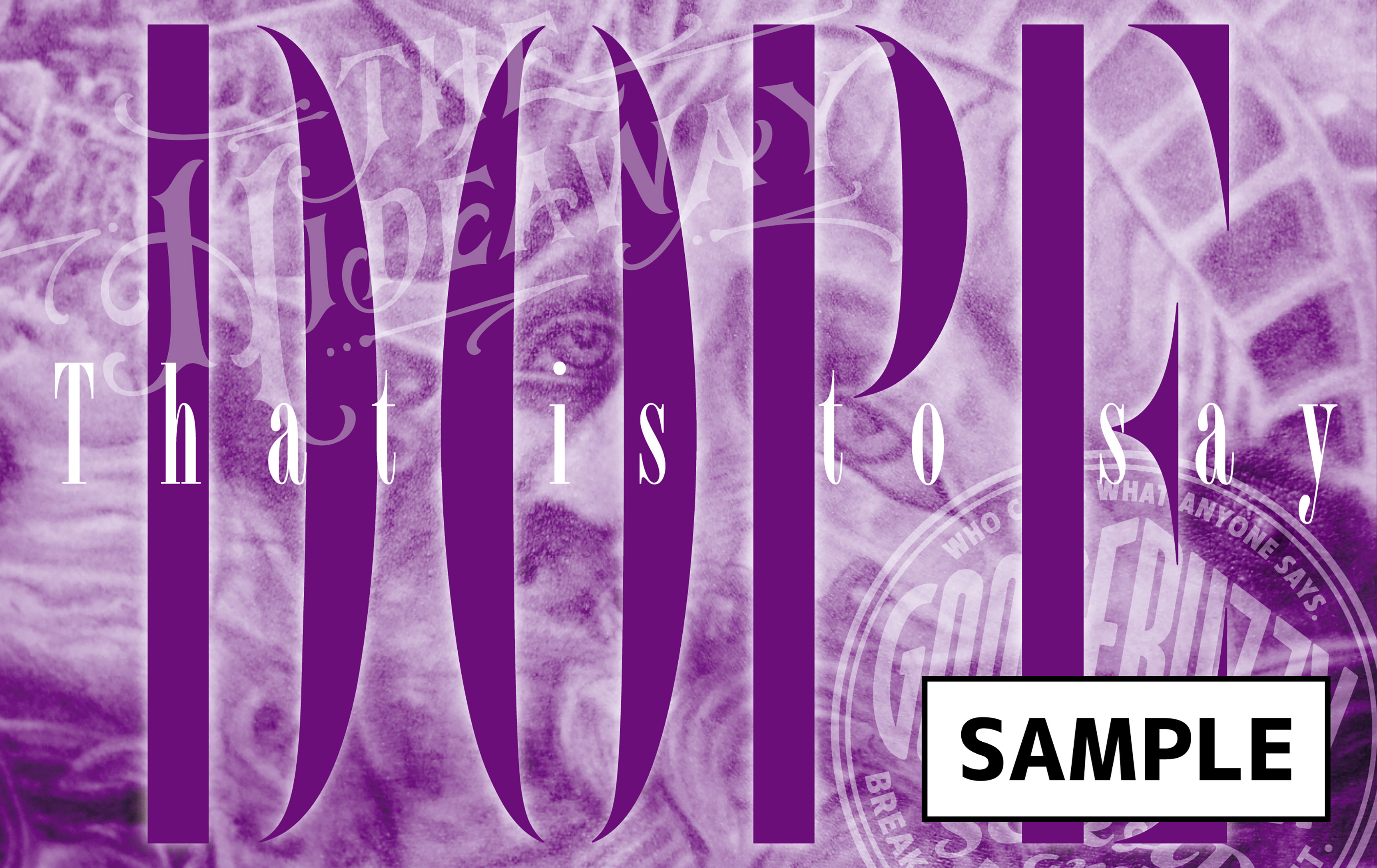 代表を務める会社「THE HIDEAWAY」、自身のブランド「GOOSE BUZZY」、本書タイトル「DOPE」のロゴをあしらったステッカー。