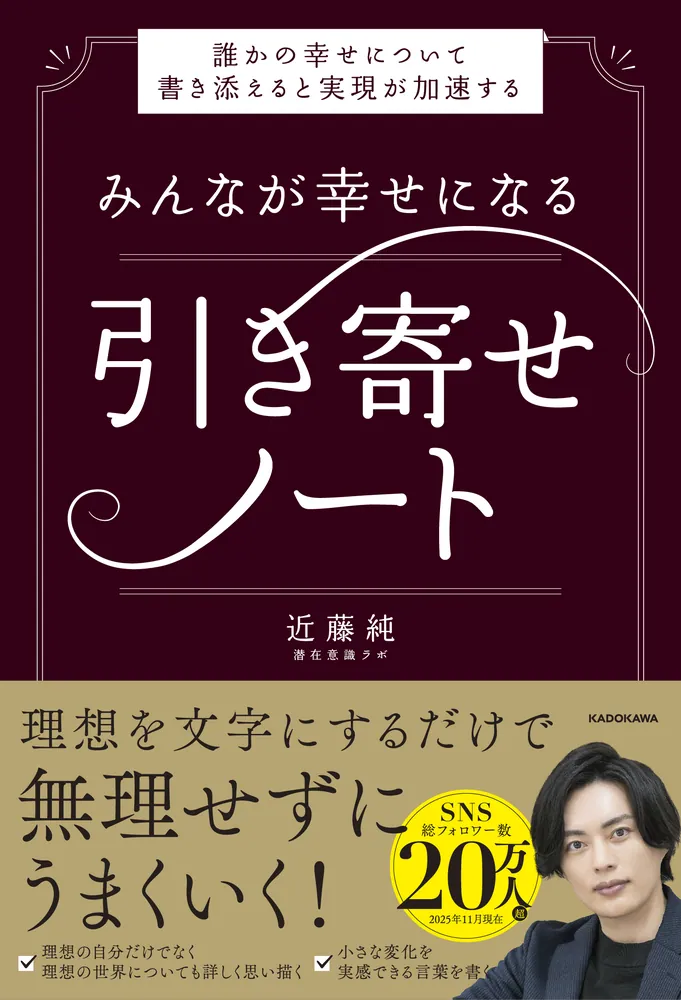 この本では、引き寄せの土台となる「書く」という行為に焦点を当てます。書くとは、潜在意識にダイレクトにアクセスできる習慣です。そして自分が願っていることの本質を理解するためのプロセスでもあります。コツは【理想の自分だけでなく、理想の世界についても書くこと】。そして【自身の「感情」について丁寧に観察し、言語化すること】。特に感情については、今の感情についても、理想が叶った状態の自分の感情についても、徹底的に書いていただきたいです。引き寄せノートによって、みなさんの成功と幸せが加速することを祈ってやみません。
