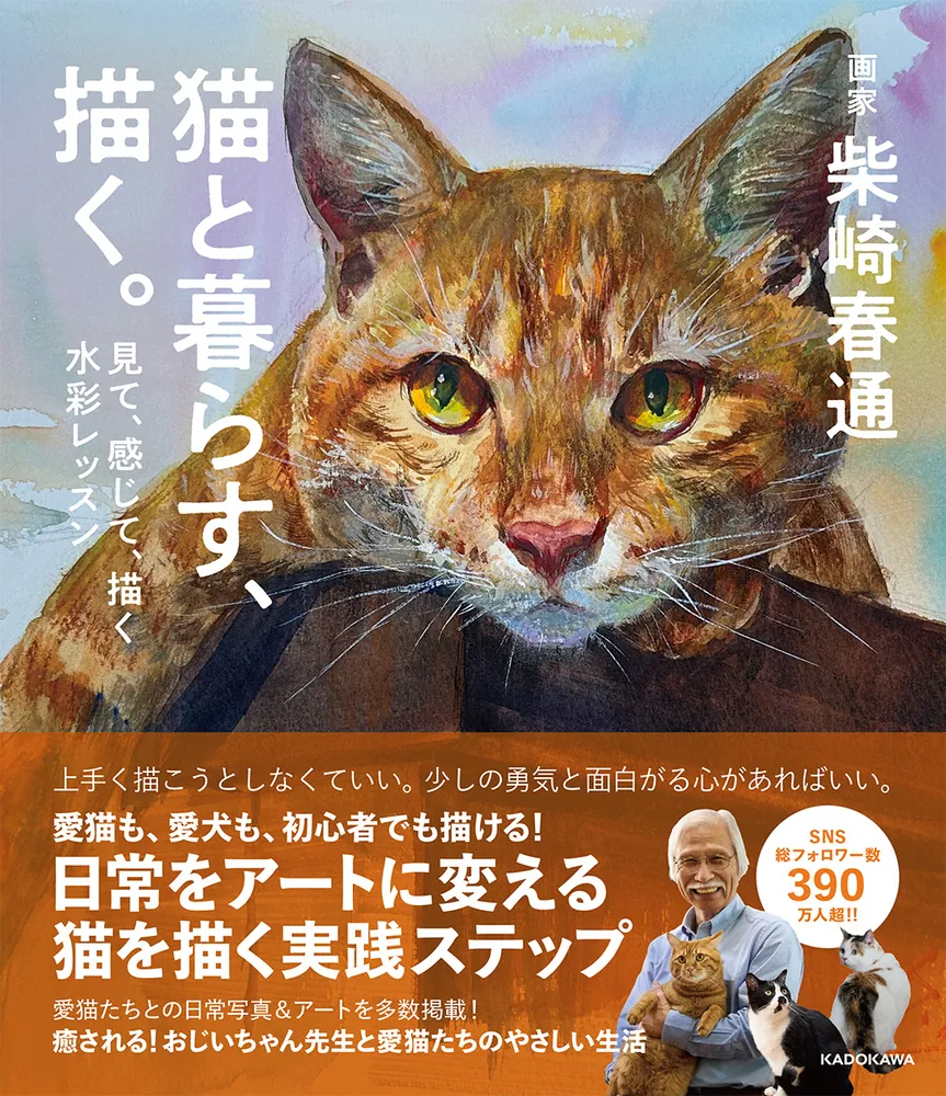 画家・柴崎春通が贈る、はじめての猫の描き方×猫エッセイ。猫と水彩の魅力を「見る・読む・描く」で味わえる、水彩好きも猫好きも、ページを開くたびに幸せになれる一冊です。YouTubeにも度々登場するかわいい3匹の愛猫マロン、トマト、ベリーたちとの何気ない日々を水彩作品や、猫の描き方とともに綴りました。窓辺で丸くなる猫、スケッチブックの上に座り込む猫、午後の静かな光の中で佇む猫――そんなふだんの猫を描くことで見えてくる「猫と描く喜び」や「日常をアートに変える視点」、柴崎先生が感じた「小さな発見」や、「猫と暮らすよろこび」を、おじいちゃん先生ならではの穏やかでやさしい言葉でお伝えします。猫の毛並みや光の表現、筆づかいのコツ、にじみ・陰影のつけ方など、プロが実践する猫を描く水彩技法もやさしく解説、さらに愛猫マロン、トマト、ベリーの3匹との日常から生まれた水彩作品も多数掲載しています。動画で大人気の愛猫3匹たちの写真も交えて構成し、眺めて癒され、学んで描ける猫のかわいさと水彩の奥深さが同時に楽しめる、特別な一冊です。YouTube登録者210万人、総SNSフォロワー数が約400万人という圧倒的な支持を集める柴崎春通ならではの、やさしい語りと水彩の世界観、猫好きはもちろん、アートファン、水彩初心者にも幅広く楽しんでいただけます。