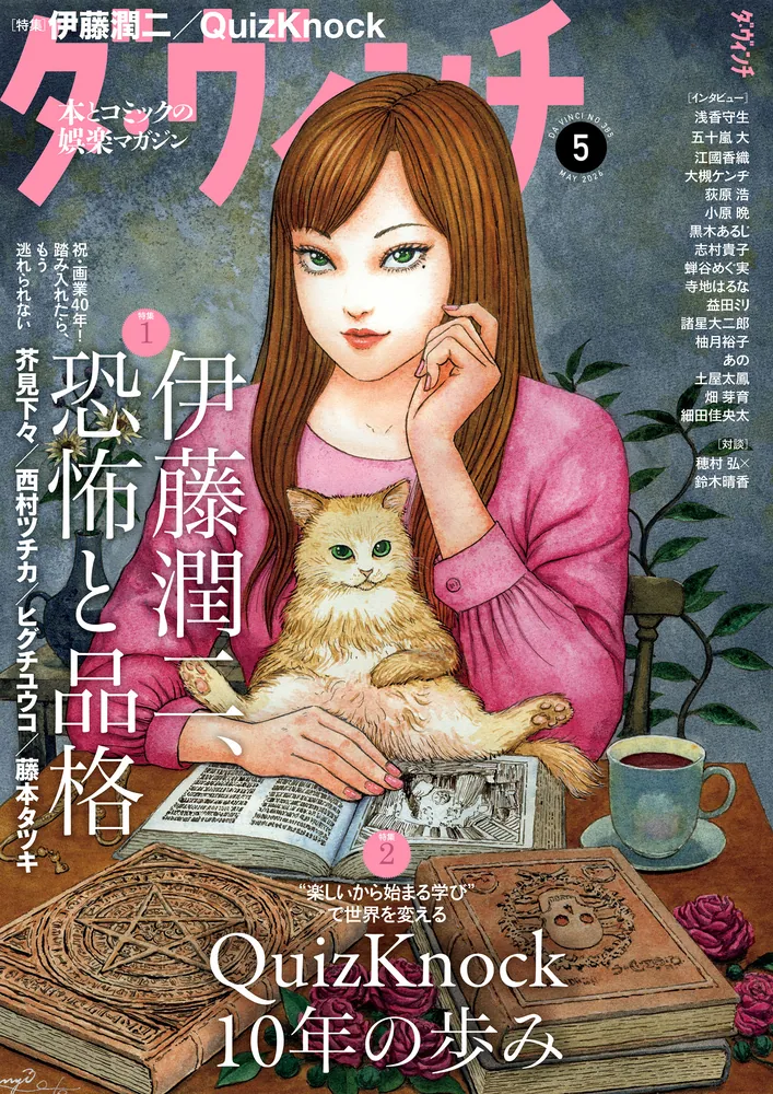 本とコミックの娯楽マガジン『ダ・ヴィンチ』2026年5月号の第1特集は、「伊藤潤二、恐怖と品格」。1986年、「富江」が『月刊ハロウィン』(朝日ソノラマ)新人漫画賞「楳図賞」で佳作を受賞し、デビューした伊藤潤二さん。その後、「道のない街」「首吊り気球」や、「双一」シリーズ、『うずまき』など、数多の名作を生みだし続けてきた。