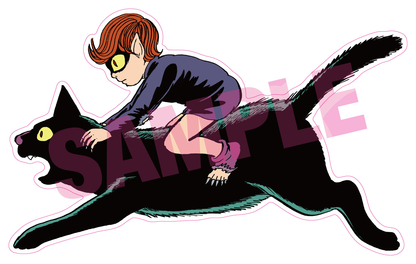 ブックレットには、ソノシート「猫目小僧 妖怪水まねき」(朝日ソノラマ、昭和44年9月発売)に収録された描き下ろしマンガも再録!ポストカードやステッカーには楳図かずおの原画を使用!