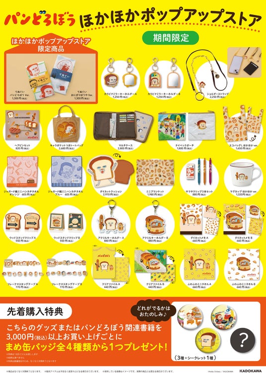 株式会社KADOKAWA(東京都千代田区)は、大人気絵本「パンどろぼう」シリーズのグッズ販売のほか、パンどろぼうと一緒に写真が撮れるフォトスポットを設置した【ほかほかポップアップストア】を9月11日(水)より全国の書店にて開催します。