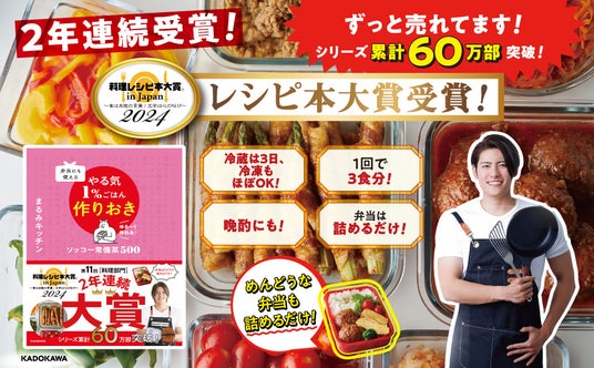 【史上初2年連続レシピ本大賞受賞】『やる気1%ごはん作りおき』まるみキッチン氏より喜びのコメント