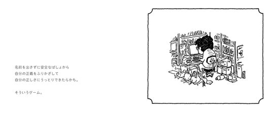 また、いつものカラフルでユーモアあふれる作風とは異なり、著者初の全編モノクロ作品です。