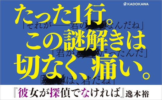 株式会社KADOKAWA(本社:東京都千代田区)は、逸木裕氏の最新小説『彼女が探偵でなければ』を2024年9月28日(土)に発売します。