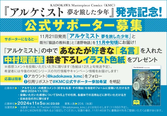 KADOKAWA Masterpiece Comics『アルケミスト 夢を旅した少年』2024年11月21日(木)発売