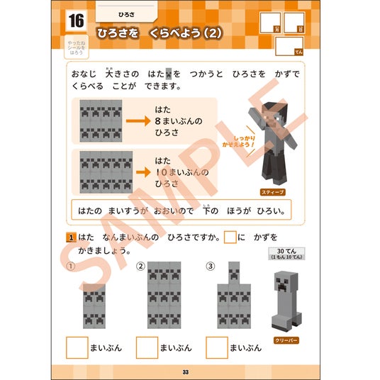 問題サンプル:『学習ドリル マインクラフトで学ぶすう・ずけい・たんい 小学1年』