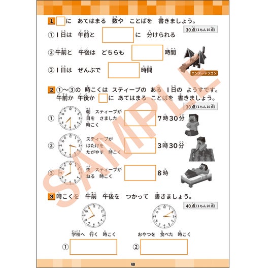 問題サンプル:『学習ドリル マインクラフトで学ぶ数・図形・たんい 小学2年』