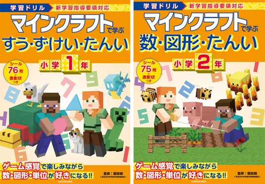 株式会社KADOKAWA(本社:東京都千代田区、 取締役 代表執行役社長 CEO:夏野剛)は、『学習ドリル マインクラフトで学ぶすう・ずけい・たんい 小学1年』、『学習ドリル マインクラフトで学ぶ数・図形・たんい 小学2年』を2024年11月20日(水)に発売しました。