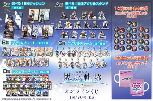 『英雄伝説 界の軌跡 -Farewell, O Zemuria-』のオンラインくじがくじ引き堂に登場! 多数のキャラクターが登場した激動の物語の余韻とともに、魅力的なグッズの数々をGETしよう!