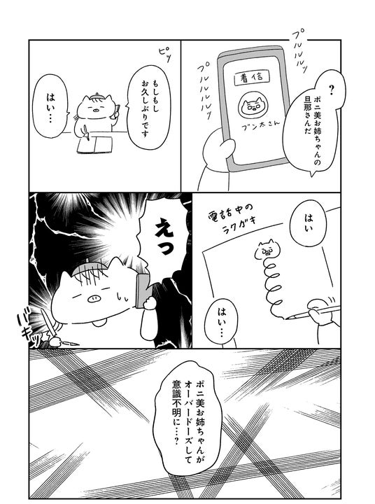優しい夫に恵まれ、幸せそうだったポニ美がある日オーバードーズで倒れる。