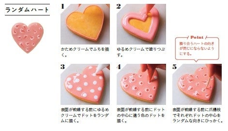 アイシングクッキーのように特に難しそうに見えるデザインは、ひとつひとつ手順写真付きで丁寧に解説しています。
