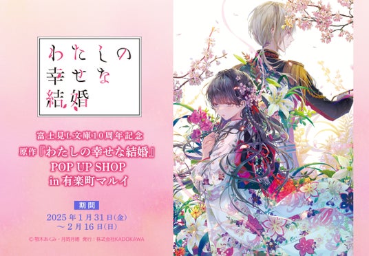 株式会社KADOKAWA(本社:東京都千代田区、 取締役 代表執行役社長 CEO:夏野剛)は、富士見L文庫10周年を記念して、人気小説シリーズ『わたしの幸せな結婚』のPOPUP SHOPを、2025年1月31日(金)~2月16日(日)の期間で有楽町マルイにて開催いたします。