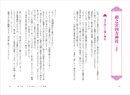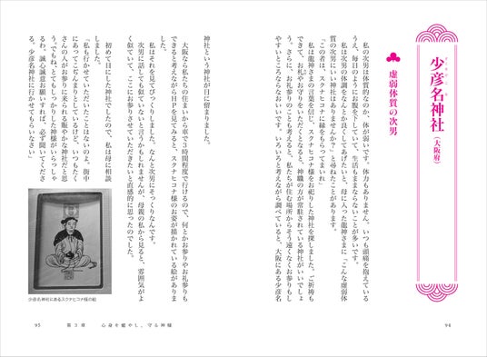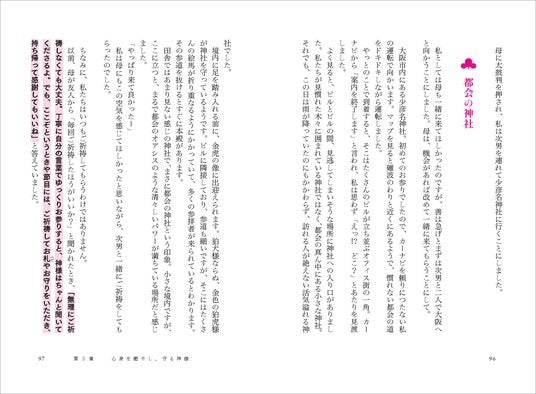 金運アップ、ぼけ封じや健康祈願、恋愛成就など著者厳選の神社も紹介しています。京都の伏見稲荷大社の稲荷の神、埼玉の三峯神社でのオオカミ様、「三年続けてお参りすれば一生お金に不自由しない」