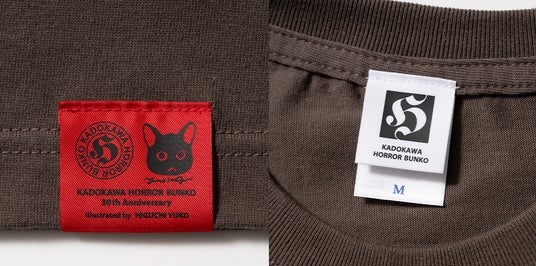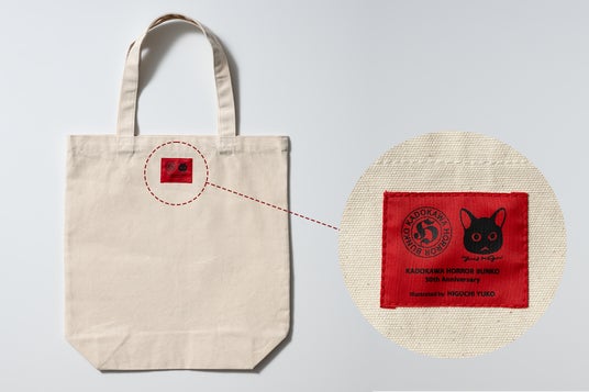 裏側に縫い付けられた、「ヒグチユウコ」と「角川ホラー文庫」のWネームのタグも目を引きます!