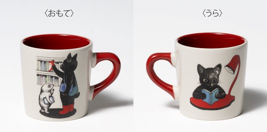 両面にプリントされた黒猫のイラストが可愛い、たっぷりサイズ(350ml)のマグカップ。