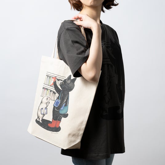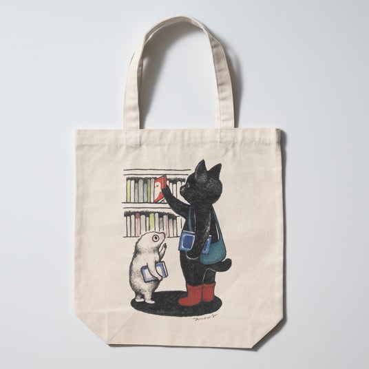 しっかりしたキャンバス地に、<ふたり>のイラストがプリントされたトートバッグ。