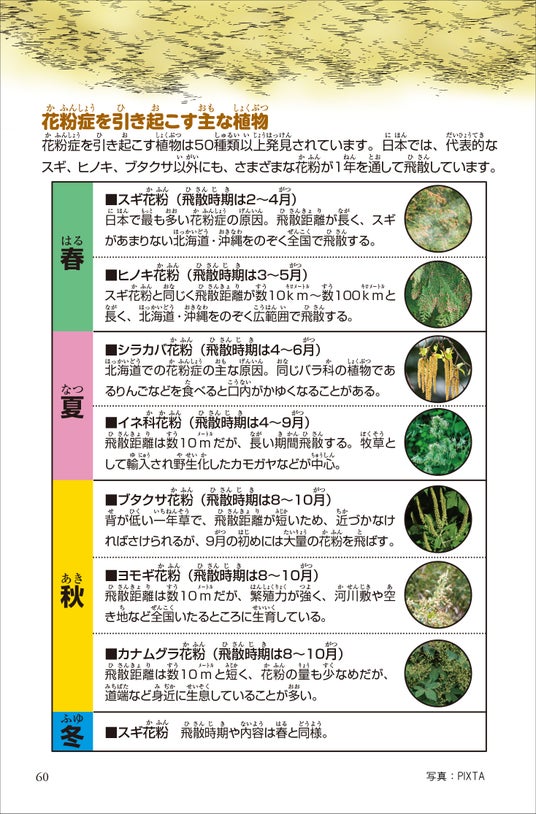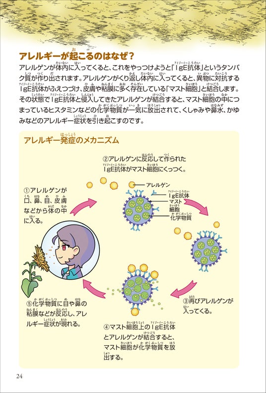 シリーズ第一弾は、いまや子どもから大人までを悩ます花粉症がテーマ。ハラハラドキドキのオールカラーまんがを楽しみながら、アレルギー発症のメカニズムや花粉の種類、花粉症の予防や治療法など役立つ知識が自然と身につきます。