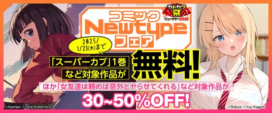 各電子ストアにて一部人気タイトルが無料もしくは100円、30~50%OFFで購入可能な【コミックNewtypeフェア】が2025年1月23日(木)まで開催!