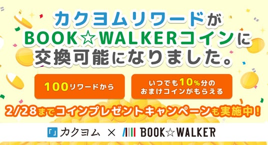 また、交換開始を記念し、2025年2月4日(火)から2月28日(金)まで、カクヨムリワードをBOOK☆WALKERコインに交換したユーザー全員を対象とした「もれなくもらえる!コインプレゼントキャンペーン」を開催します。