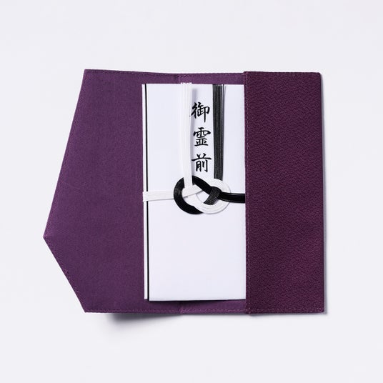 結婚式でもお葬式やお通夜でも使っていただけるように、「慶弔両用」の紫色・無地のふくさです。
