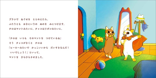 ある日、黄色がだいすきだというチャコを見て、チロは「今日はふたりでいろんなだいすきものをさがしてあそぼうよ」と言いました。