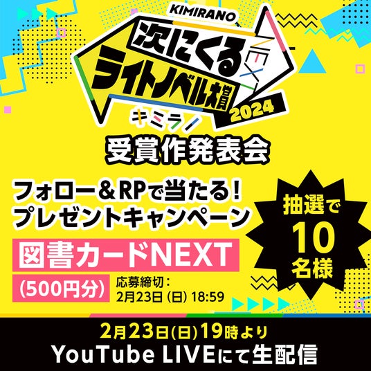 読者が選んだ最強の新作ラノベが決まる! 「次にくるライトノベル大賞2024」受賞作発表会を2月23日(日)19時よりYouTube Liveにて生配信!