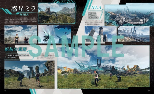 なかでも見どころは"惑星ミラ"のページ。Wii U版から登場する5つの大陸と、本作の追加ストーリーの舞台となる新たな冒険の地"浮遊大陸"のビジュアルを大きく掲載。個性の異なるそれぞれの大陸で待ち受けている、息をのむような絶景や神秘的な秘境、そして危険な原生生物たちとの遭遇。イメージをふくらませて、ゲームの発売日まで楽しみにお待ちください。