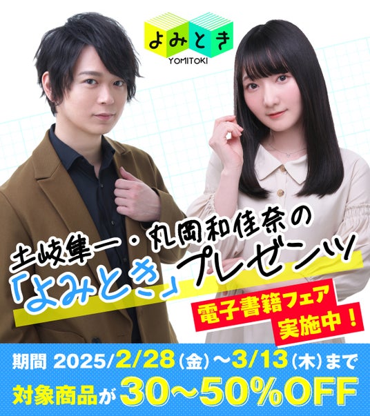 土岐隼一・丸岡和佳奈の宣伝バラエティ番組「よみとき」おすすめ作品が30~50%割引で購入可能な電子書籍フェア実施中!