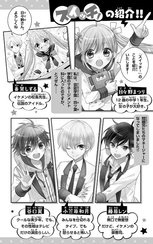「スイッチ!」シリーズは、児童文庫No.1レーベル※角川つばさ文庫で数多くの大ヒットラブコメシリーズを手がける「深海ゆずは」さんの、いま一番アツい《アイドル×お仕事》ラブコメ。