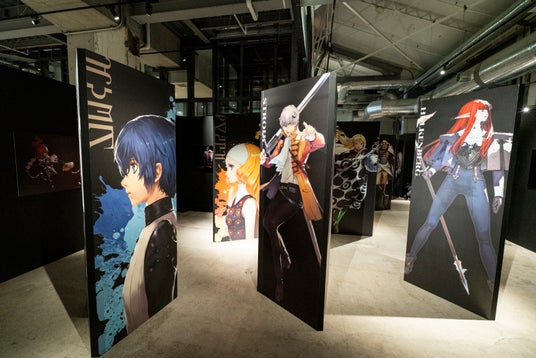こちらの展示エリアでは主要な登場人物たちのアートや解説を展示しています。アトラス開発チームによるコメントも併せてご覧ください。また、作中で見かける「候補者の貼り紙」を実際に貼り出した展示も必見。