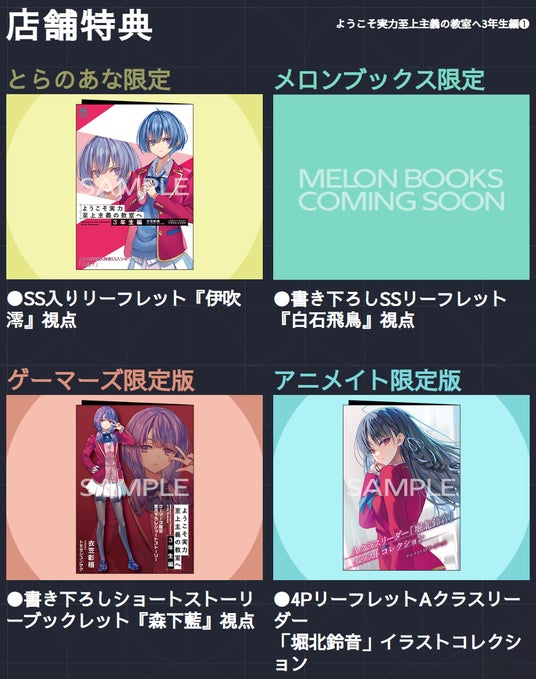 『ようこそ実力至上主義の教室へ 3年生編1』店舗特典情報