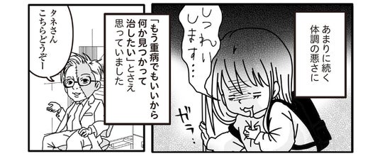 父親を亡くした直後、突然強烈な吐き気と呼吸困難に襲われた著者の種さん。酷い体調不良はしばらく続きますが、どの病院で検査を受けても「異常なし」と言われ、苦しいのに対策のしようがありません。実は、その原因は心の病「パニック障害」でした。