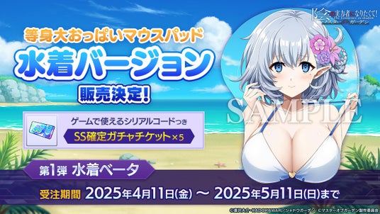 - 等身大おっぱいマウスパッドに水着バージョンが登場!第1弾はベータ! 購入者は、SS確定ガチャチケット5枚がもらえる!
