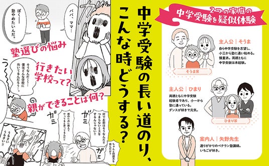 中学受験をはじめる時、はじめてから受験直前までに生じる疑問を、中学受験指導のベテラン講師が解説します。中学受験の開始から合格した後まで、2つの仮想家庭の中学受験をマンガで疑似体験!