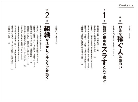 マーケットの捉え方、自分の価値を上げていくキャリアのつくり方など自分自身を稼ぐ人に変えていく考え方から、「働く」ことに加えて「投資」で資産を増やしていく方法まで、ノウハウ本にとどまらない「お金の哲学」を伝授します。