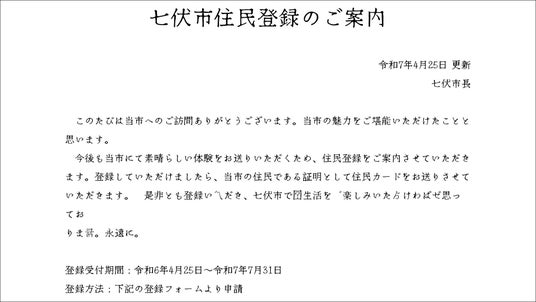 2025年4月30日(水)をもって終了を予定しておりました七伏市住民登録ですが、ご好評につき1周年を記念して期間を延長いたします。