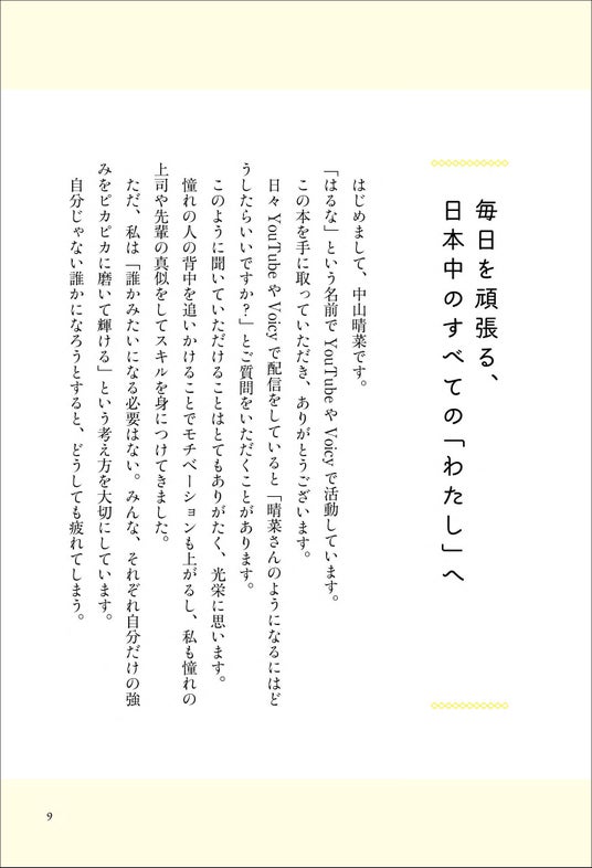30代役員のリアルな日常をつづるお仕事Vlogやお気に入りアイテムの紹介などを発信している「はるな / いまさらチャンネル」が大人気。中山晴菜さんによる待望の初書籍です。