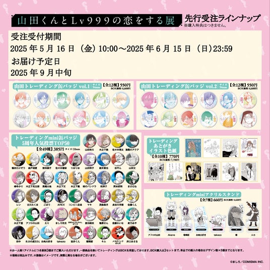 山田くんとLv999の恋をする展 東京会場にて好評だった一部グッズをカドストにて先行受注いたします!